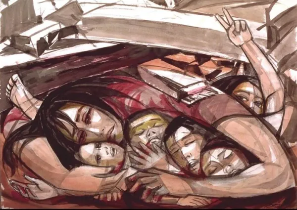 ambulance drivers, aid workers, women, children, worshippers in a prayer