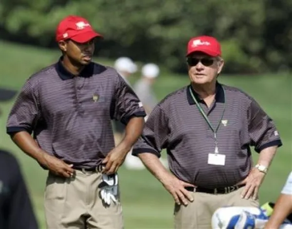 Jack Nicklaus with Tiger Woods during the 2005 Presidents Cup.