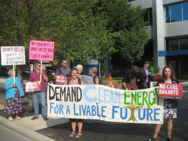 On Monday morning the protesters outside the the Public Utilities Commission of Ohio were fewer in number than in June, but no less determined to prevent a consumer bailout of FirstEnergy's Davis-Besse nuclear plant and Sammis coal-fired plant. After three postponements, the PUCO was holding the first evidentiary hearing on FirstEnergy's request for a rate hike to support the aging power plants.