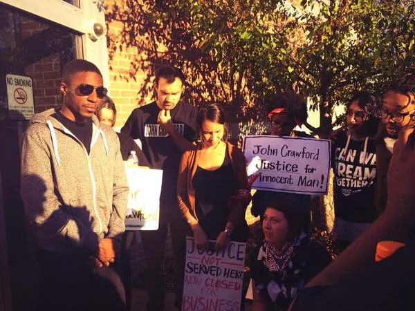 The students had occupied the lobby of the police station for two consecutive days waiting for a meeting with Beavercreek Police Chief Denis Evers. Student organizers met with Evers to discuss three demands that they had made following the widely-publicized killing of unarmed James Crawford III in the Beavercreek Walmart in August. A special grand jury failed to indict the officer who shot Crawford in the back of the arm and liver. The grand jury presentation was made by prosecutorial fixer Mark Piepmeier, selected by Attorney General Mike DeWine. DeWine is from Greene County where the killing took place.