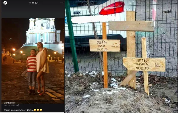 Photo 2: Their graves in Irpin, where they lived and were killed on March 5, according to the date on the makeshift crosses.
