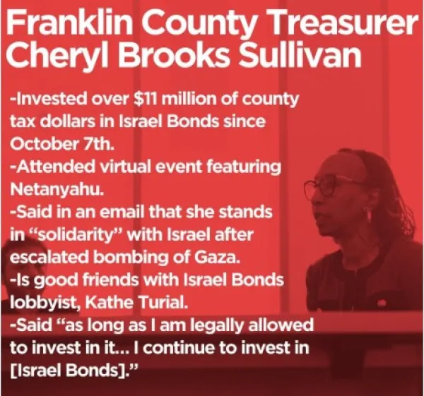Let’s show County Treasurer Brooks Sullivan that we won’t let our tax dollars fund genocide!