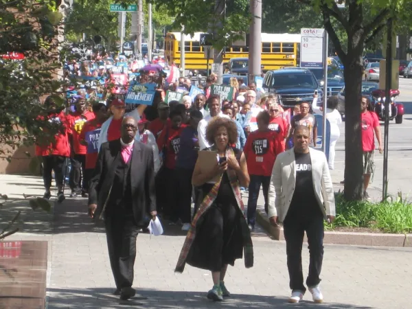 At the Statehouse, workers and faith leaders called on Ohio lawmakers to support voting rights, education, racial justice, women’s rights, equal protection, and environmental justice. Members of the Service Employees International Union (SEIU) were out in force, calling for a $15 minimum wage.