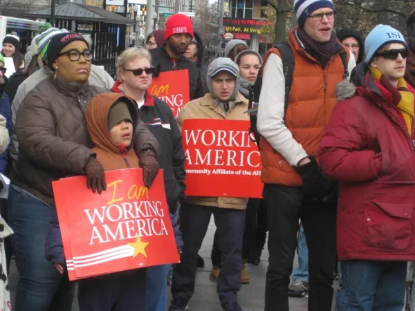 “The GOP is trying to pass a tax bill that they say is trickle-down economics,” said Julian Johnson, a community organizer with Working America, an affiliate of AFL-CIO. “But when you really look at the tax bill, you realize that it’s nothing but trickle-down oppression!"