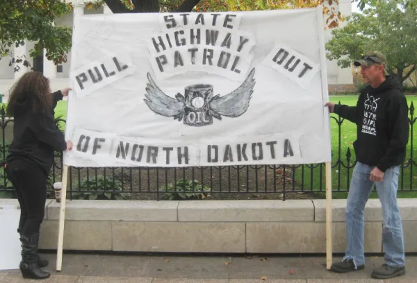“I don’t want our government to provide protection for corporate profits in another state,” said Kim McCarthy of Dayton. “The pipeline must be stopped. They’re turning their back on treaties they made with the Native Americans. It’s enough. The time has come for the people to demand that our government represent us instead of corporations.”