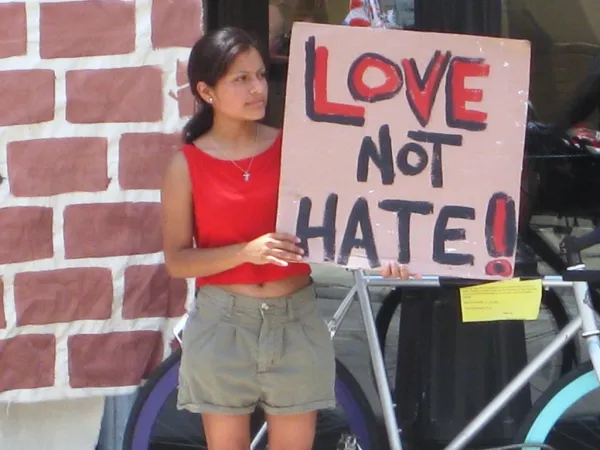 A lively debate ensued across High Street. “Love trumps hate!” the protesters chanted. “Hillary’s a hater!” shouted a Trump supporter.