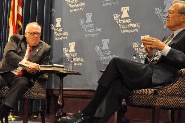 "Rumsfeld at The Heritage Foundation" by Medill DC is licensed under CC BY 2.0.