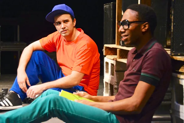 Fledgling rappers Julian (Rudy Frias, left) and Hank (David Glover) get to know each other in How We Got On (photo by Matt Slaybaugh)
