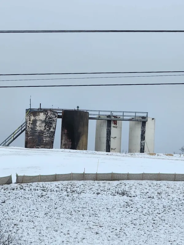 Groh well pad explosion and fire - A Jan. 2 explosion at the Gulfport Appalachia-owned Groh well pad sent flames of unregulated and unidentified toxic chemicals 100 feet into the air and caused the evacuation of people leaving within a half mile of Antrim, Ohio. Two of four storage tanks on site burned. (Antrim Volunteer Fire Department Facebook Photo)