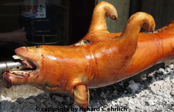 The Chinese slang "sha zhu pan" -- "pig butchering" -- describes fattening victims with flattery and lies to appear trustworthy and drain their assets. Photo copyright by Richard S. Ehrlich