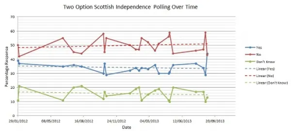 Only a week before the referendum the Yes camp enjoyed a sharp surge in polls that pushed the pro-independence vote from a fairly consistent 35% up to 51%. Most commentators agree that this was less a sudden surge in patriotic mettle and more a reaction against the patronising negative campaigning of the 'Better Together' camp, which throughout the campaign enjoyed the overwhelming support of elites in Westminster, the media and the financial sector.