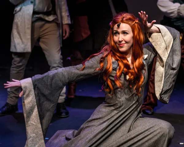 The parody’s book and lyrics are by Steven Christopher Parker and Steven Brandon, with Stegeman scribing additional lyrics. Rachael Stein directed the inspired mockery, which includes projections on the theater’s back wall and “high tech” props such as rubber swords and stick horses, which are droll when compared to the lavish budgets and FX of the series. In terms of production values, the play’s costumes by Lena DeLoache and Stein are probably the most outstanding thing about Shame, followed by the hair and makeup by Stein and Ilyssa Stein.