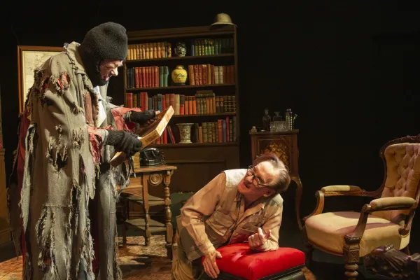 This revival was not my first foray to the Odyssey Theatre to see a Pinteresque production. In circa 2012 I saw my first one at that bastion of the boards and bards, directed by two-time Oscar nominee John Malkovich (star of 1988’s Dangerous Liaisons and many other films), and wrote: “In A Celebration of Harold Pinter [Julian] Sands occasionally gives raspy voice to that quick witted, temperamental English playwright, poet and actor, but does not depict him per se. Rather, this two-act production consists mostly of Sands appearing as himself while paying tribute to Pinter, with anecdotes of and about him (some drawn from the memoir of Pinter’s widow, Antonia Fraser), Pinter’s comments about contemporaries such as playwright Samuel Beckett and on cricket (!), readings from some of the bard’s plays, which dominate the first act, and his poems, which form the bulk of act two.”