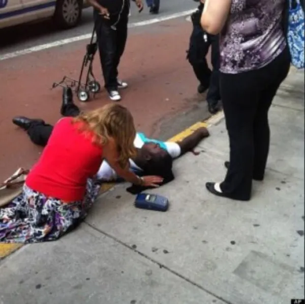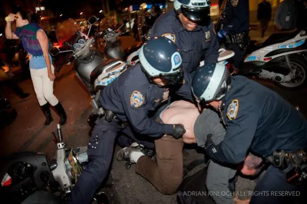 The LAPD was more reactive than the NYPD, actually speaking to and visiting one activist who posted nearly a dozen pictures on Twitter. While attempting to at least appear to engage in community outreach, what the LAPD did was construed as a threat and reported on Twitter: @LACANetwork #myLAPD just showed up for a friendly "happened to be in the neighborhood" visit. Considering that police have been known to shoot unarmed people in the back and leave them to bleed to death in public in broad daylight without much media scrutiny, the activist's life might have been saved by Twitter. The man below was shot in California for allegedly not paying bus fare: