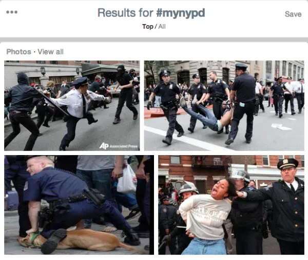 The NYPD, in the hopes of getting good photos for publication and building its community relations, encouraged Twitter users to tweet pictures of their interactions with the police with the #myNYPD hashtag. This predictably led to the posting of many pictures and videos of police brutality. The mainstream press noted the backfire and reported on the story.