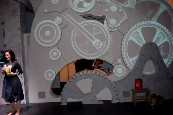 Along the way Stealing Chaplin has lots of laughs and enough violence (the pic has its share of Keystone Kops) and sex (part of the action takes place at a gentleman’s club that puts the strip into the Las Vegas Strip) to keep popcorn munchers at the multiplexes amused, interested and titillated. Film buffs, too, are catered to, as Charlie Chaplin is the movie’s putative narrator, and in a reference to Charlie’s silent cinema heyday, Stealing is periodically punctuated by onscreen titles or subtitles, that seem to be actual quotations from Chairman Charlie. There are also some vintage footage of the Little Tramp and if cineastes listen closely, they’ll hear a clever riff on Chaplin’s speech at the end of 1940’s The Great Dictator, arguably the best political speech ever delivered in an English language film. (Some Stealing characters also slyly have names “plagiarized” from Chaplin’s antifascist classic – Peter Woodward plays “Hynkel,” the moniker of Dictator’s Hitler character portrayed by Chaplin himself, while Michael Ray depicts “Captain Oakie,” a wink and a nod to the adroit comedian Jack Oakie, who lampooned Mussolini as Napaloni in The Great Dictator.)