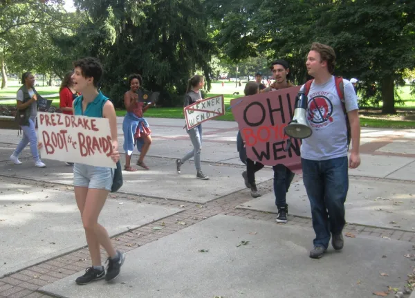 On October 7 members and supporters of the Student/Farmworker Alliance (SFA) held a rally outside Bricker Hall at the Ohio State University, calling on the administration to terminate its contract with the Wendy’s Corporation. The fast food chain has lucrative contracts with universities across the country. Wendy’s operates a restaurant in the Wexner Medical Center at OSU.
