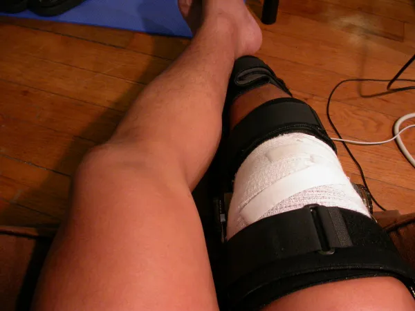 "my knee in a brace" by D.L. is licensed under CC BY-SA 2.0.
