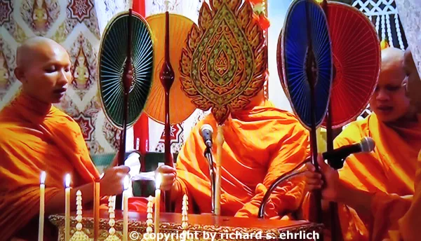 Buddhist monks chant prayers while 20,000-30,000 members of the