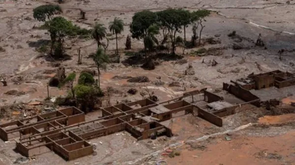 What’s left behind of a once-thriving Brazilian river town that was downstream from a collapsed mine tailings lagoon. Many of the now-dead and/or homeless occupants worked at the mine.