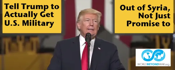 If that happens it will fulfill part of the demand that World BEYOND War has been making since Trump promised nine months ago to get “out” of Syria “like very soon.”