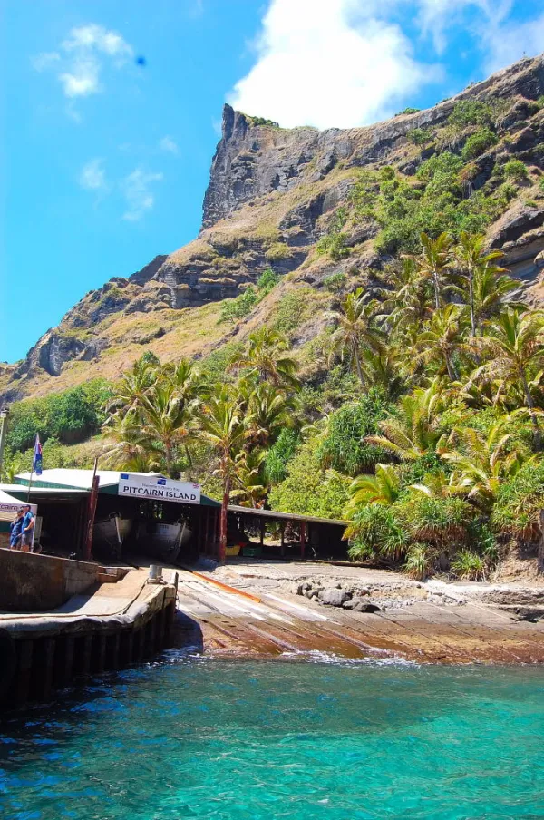 Bobbing and weaving, the 10-minute or so ride to the dock is like a Wild West show, but somehow, we manage to arrive safely, and are met by waiting Aranui seamen who lasso a rope to the pier and help us out of the roller-coaster-like barge back onto terra firma. Nearby is a wooden, open-air boathouse wherein two whaleboats are sheltered, topped by an outdated white sign emblazoned (prior to Brexit) with the European Union, UK and Pitcairn flags, and the words: “Welcome to Bounty Bay.” Relieved that I had somehow survived the twelfth task of Hercules, as I step onto the soil of Pitcairn I say, to nobody in particular, in the immortal words attributed to General Blackjack Pershing: “Lafayette, I am here!”