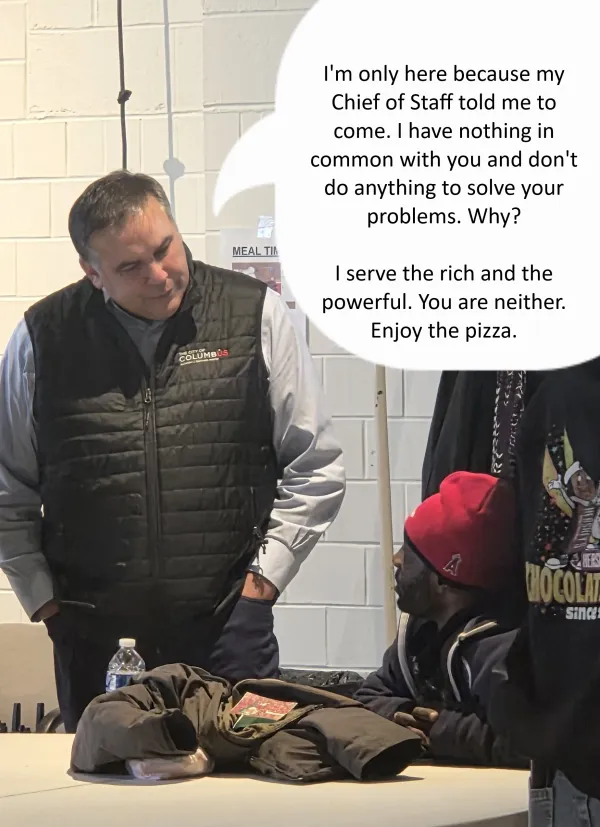 I learned that Columbus mayor was going to visit the 3rd Shift Warming Center and I was suspicious that he was doing so just for another Facebook “photo opportunity.”