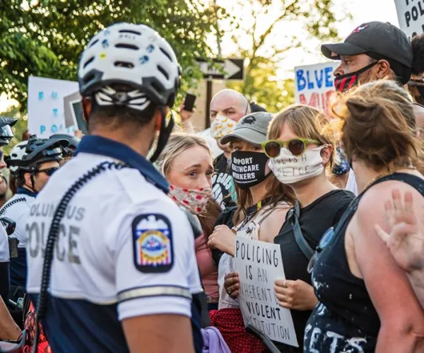 Activists compare the treatment of demonstrators at these two Columbus rallies with the passive police response to many Trump supporters and right-wing militia members carrying weapons trying to break into Governor DeWine's press conference.