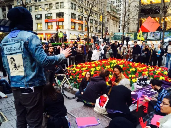 One protestor, graduate student Cecily McMillan, was groped from behind by plainclothes officer Grantley Bovell, and allegedly reflexively elbowed him. McMillan stands 5'4” while Bovell is 5'11”. After being held down for over a minute by officers she was dragged from the bus, having an apparent seizure. She was left on the ground for 20 to 30 minutes before Emergency Medical Techinicians were brought or allowed in by police.