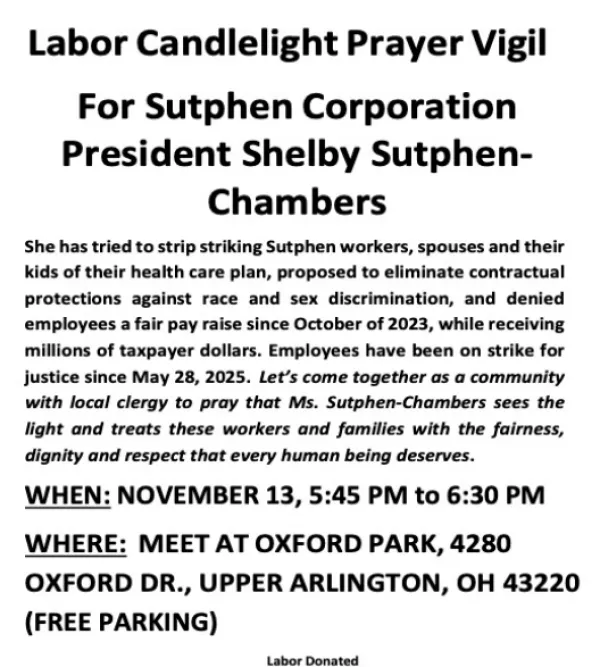 In support of the striking workers at Sutphen Corporation, who have been on strike for justice since May 28, 2025.