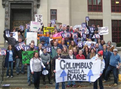 “I’m here to stand up for people who don’t make a decent wage,” said Genelle Rhynehardt, who…